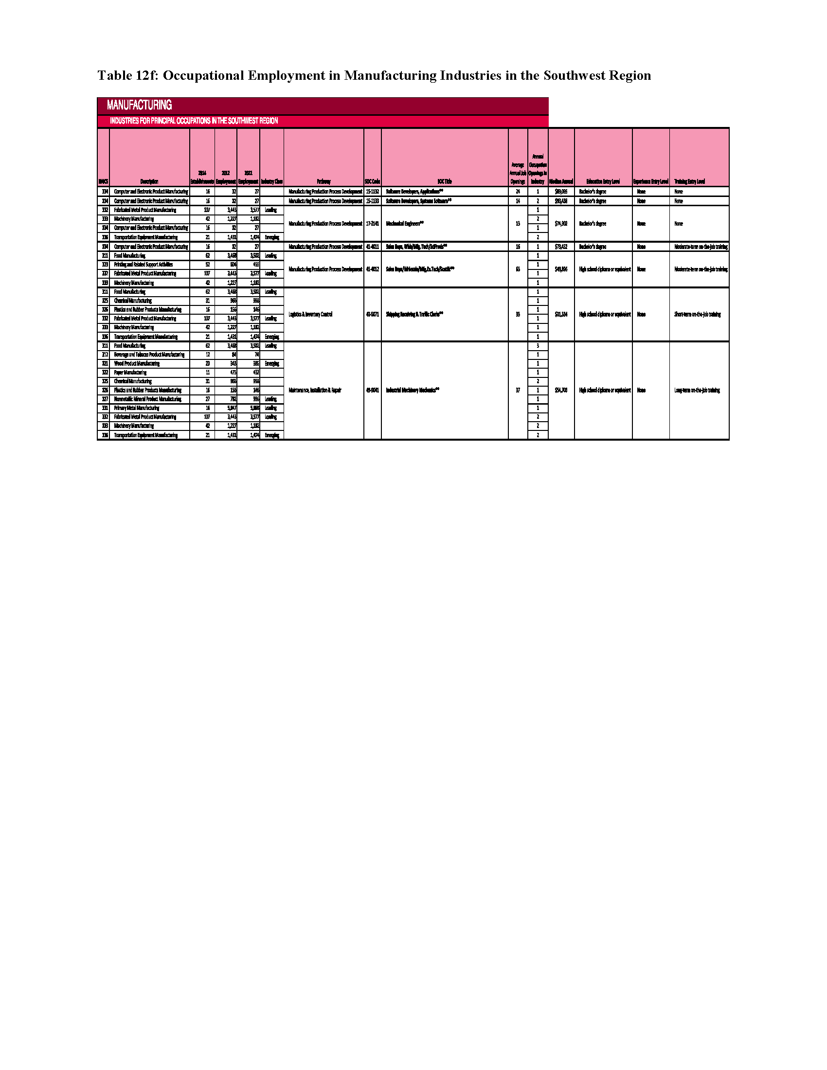 • Table 12b: Southwest Region Employment by Industry/Occupational Cluster (PNG)